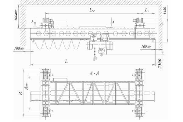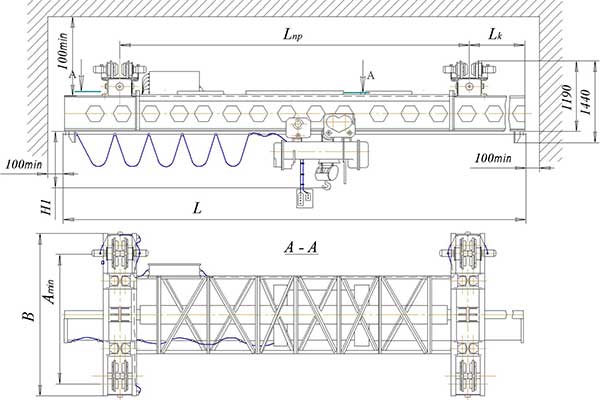 Кран должен использоваться для работ, не связанных с технологическим процессом. Преобразователь частоты, применяемый на кране, обеспечивает плавный пуск, остановку и регулирование скорости передвижения моста. Токоподвод -кабельный.
