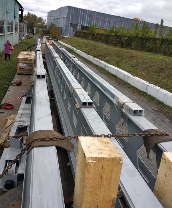 Отгрузка электрических кранов Сегодня произведена отгрузка кранов электрических однобалочных опорных г/п 5тн, пролетом 16,5м. Отгрузка осуществлена силами Заказчика. Обратно